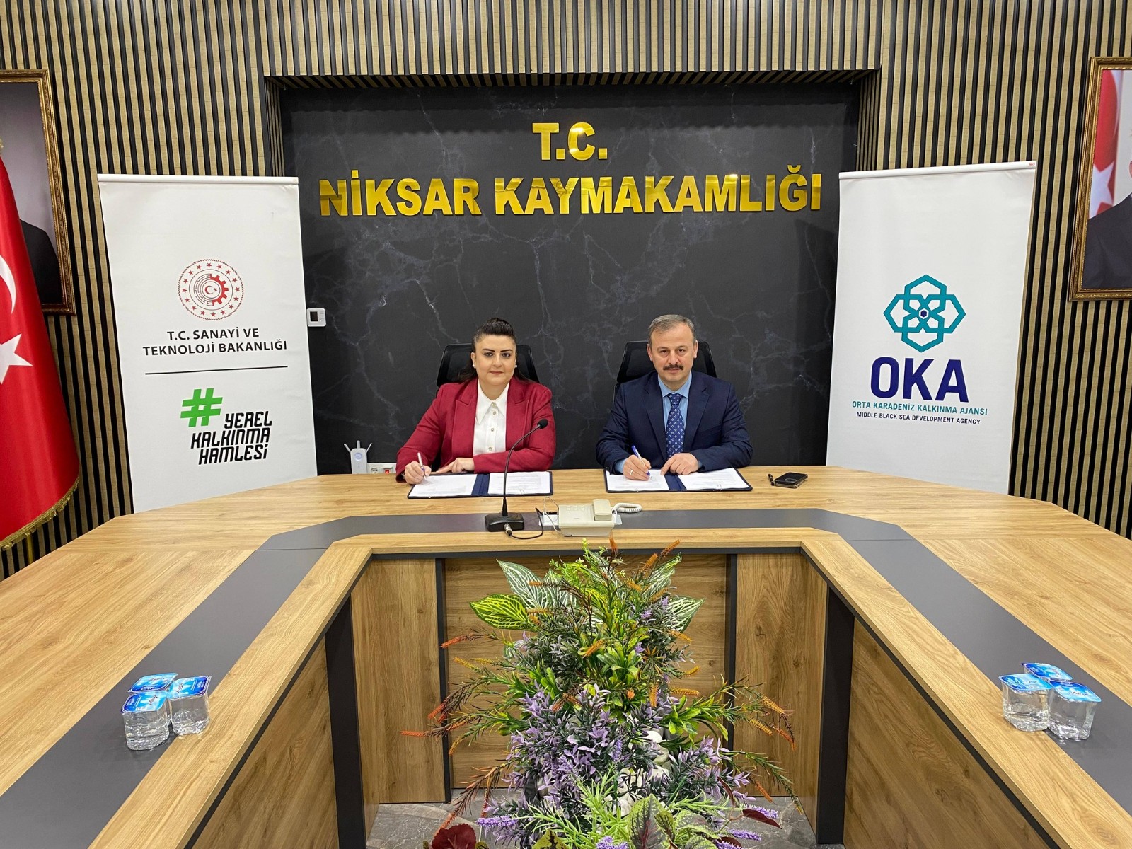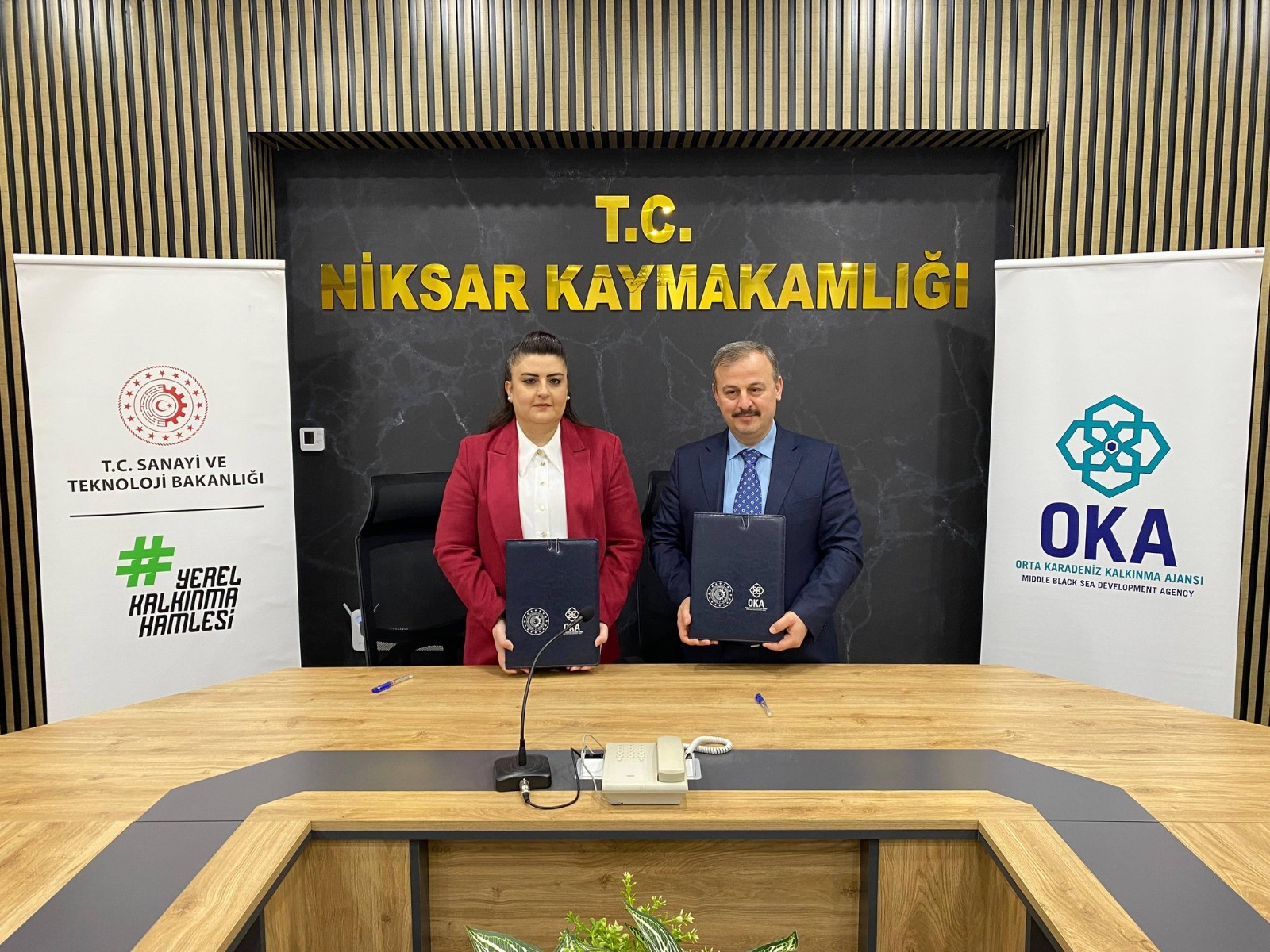 Katma Değerli Üretim ve İhracat Odaklı Fizibilite Desteği Programı kapsamında desteklenen projenin sözleşmesi, 23 Ocak’ta OKA Genel Sekreteri Mehlika Dicle ile Niksar Kaymakamı Kadir Perçi tarafından imzalandı.